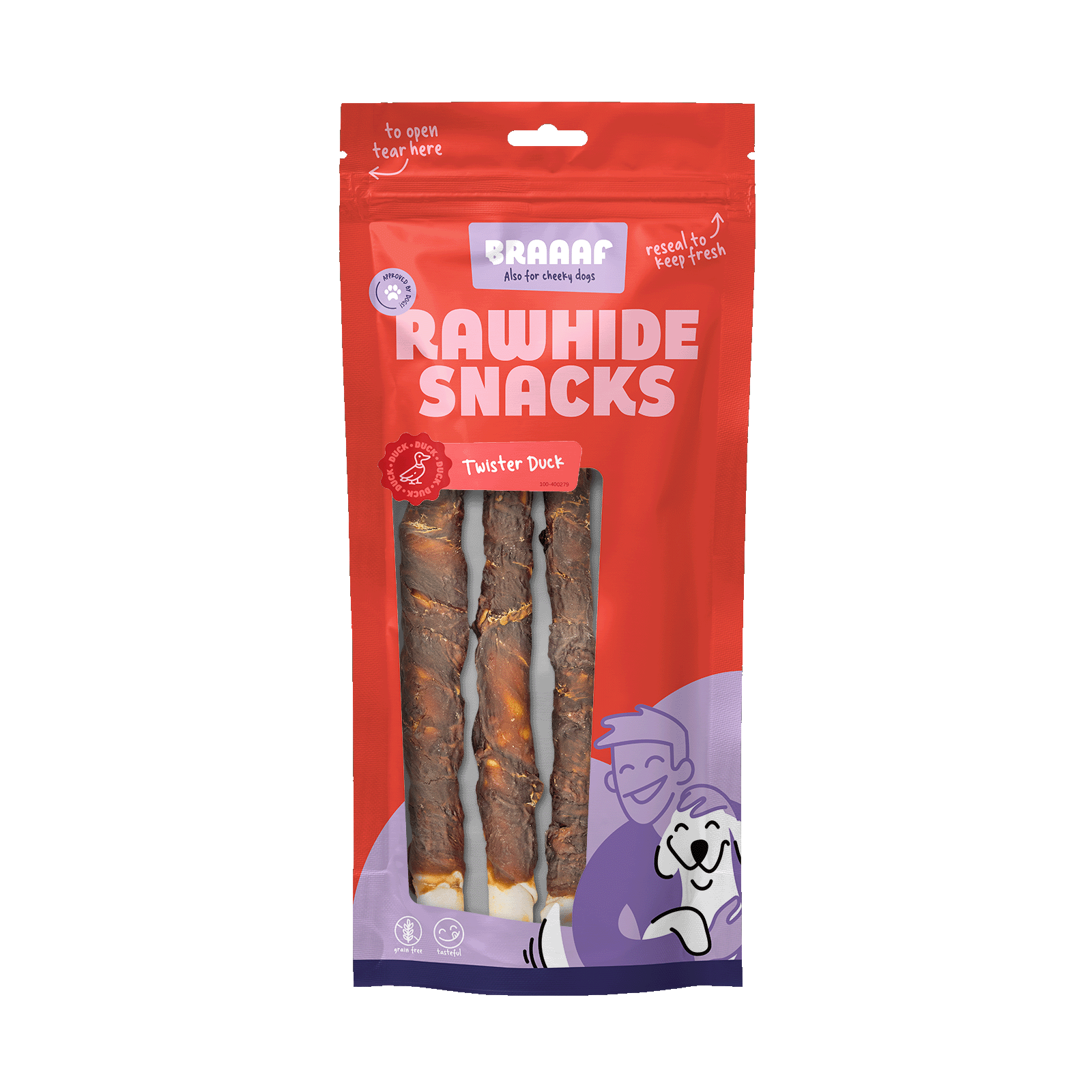 De overheerlijke kauwsnacks van Braaaf zijn samengesteld uit eersteklas ingrediënten. Dagelijkse strenge controle op kwaliteit en hygiëne waarborgen deze 2 kernwaardes. Honden hebben een natuurlijke kauwbehoefte van zo’n 30 minuten per dag; kauwen ondersteunt de mondhygiëne, draagt bij aan de mentale gezondheid en zorgt voor rust. Beloon de hond daarom met de lekkerste én gezondste snack!