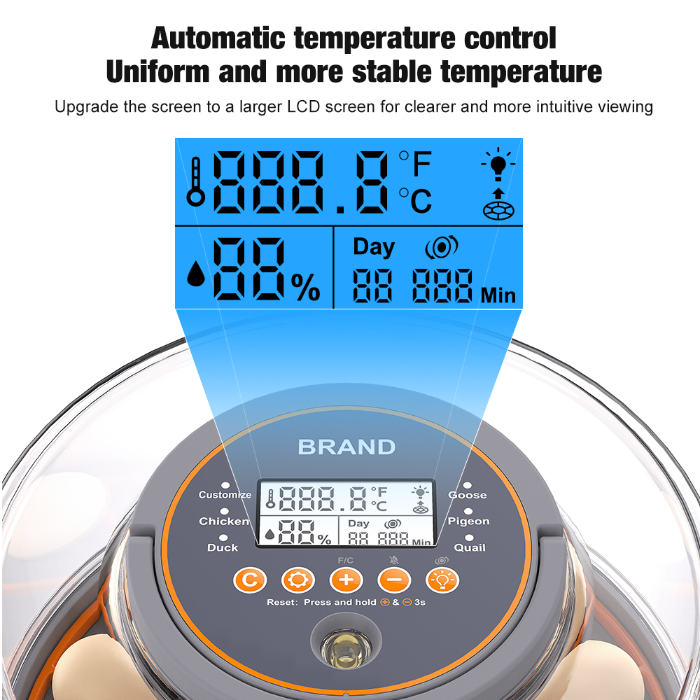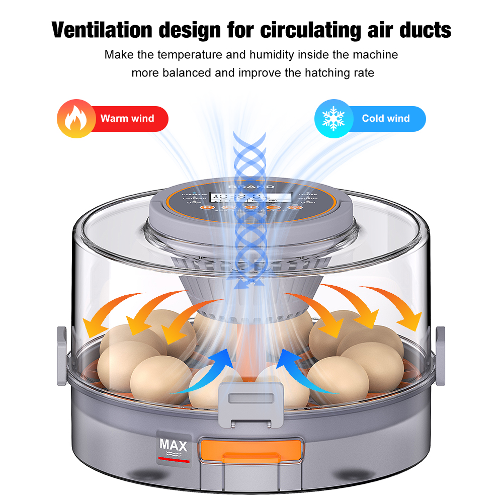 Deze digitale broedmachine is geschikt voor kleine en middelgrote pluimveeeieren en heeft een capaciteit van 12 eieren.