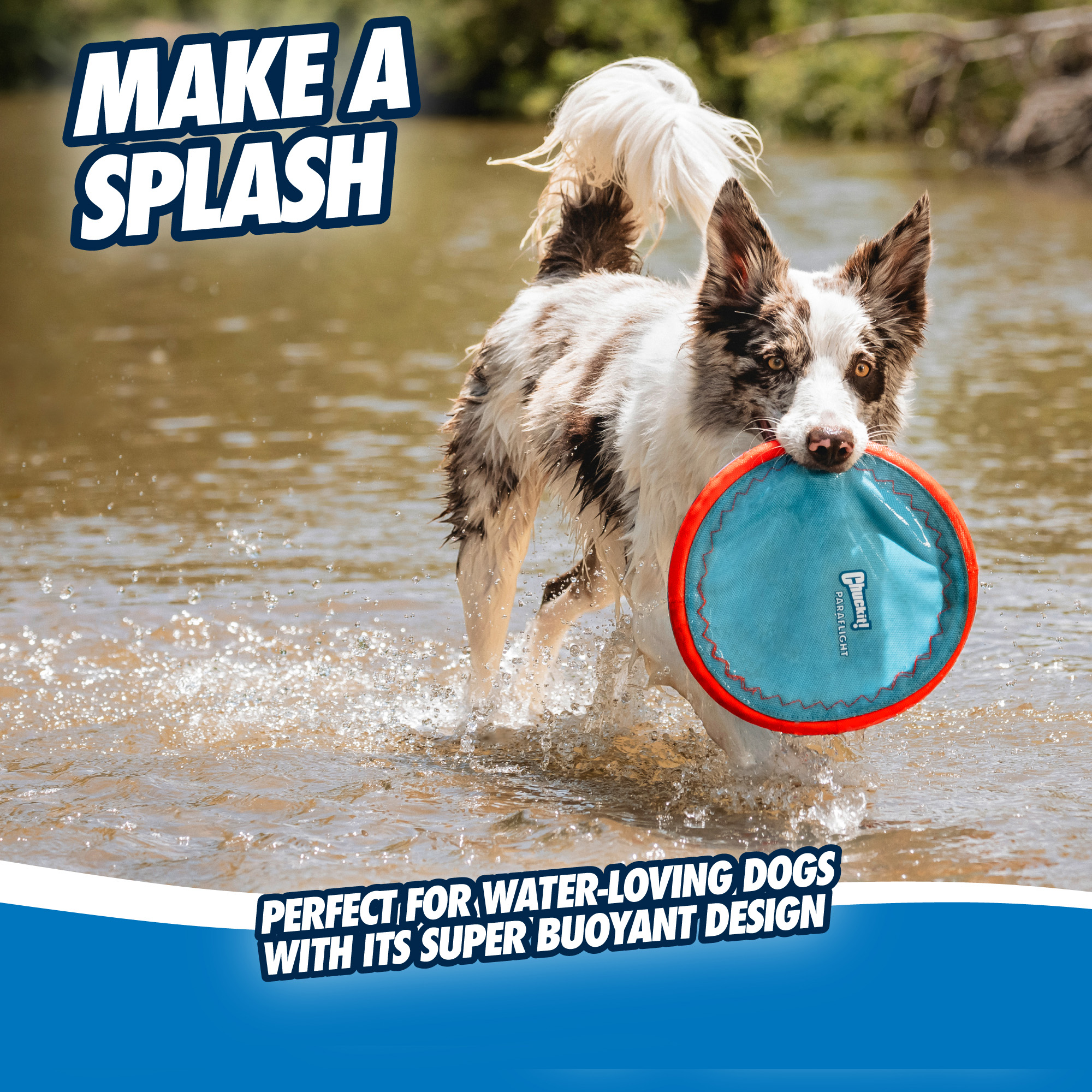 De Chuckit Paraflight is zo ontworpen, dat deze tijdens de vlucht met een lichte boog stijgt. Hierdoor wordt de hond extra uitgedaagd om de Paraflight te vangen. De Paraflight drijft extreem hoog op het water en is extra goed zichtbaar door de opvallende blauwe en oranje kleur. Gun uw hond veel speelplezier met de Chuckit Paraflight.
