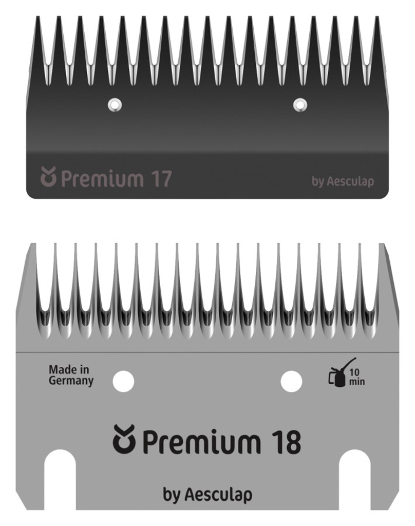 CONS0007: Premium messenset 18/17 voor het scheren van runderen met dikke vacht en fijnwollige schapen. Resthaarlengte 2-4 mm.
