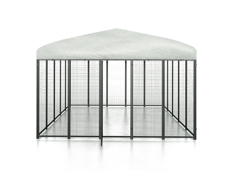 Gemaakt van koolstofstaal met een antioxiderende poedercoating. De structuur is gemaakt van buizen van 20 x 20 cm met een dikte van 0,8 mm. Het maasnet is 25 x 25 mm en heeft een dikte van 1,8 mm. Met een dak van premium polyethyleen (PE), dat waterafstotend en UV-bestendig is. De kleur is groen (RAL 6005).