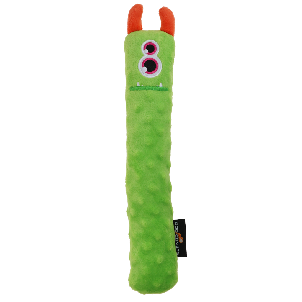 Deze buitenaardse wezens nemen samen met de trouwste viervoeters de wereld over! Deze knuffelige werpstokken zijn gevuld met een sponsvulling, wat ze zwaarder en dichter maakt dan standaard hondenspeeltjes. Het knisperende materiaal aan de binnenzijde en de pieper zorgen voor extra stimulans tijdens het spelen en moedigen de hond aan om zijn tanden in het speeltje te zetten. De Invaders zijn perfect om binnen mee te spelen, lekker mee te knuffelen en trek- en apporteerspelletjes te doen. Elke Invader heeft een unieke gezichtsuitdrukking en persoonlijkheid.