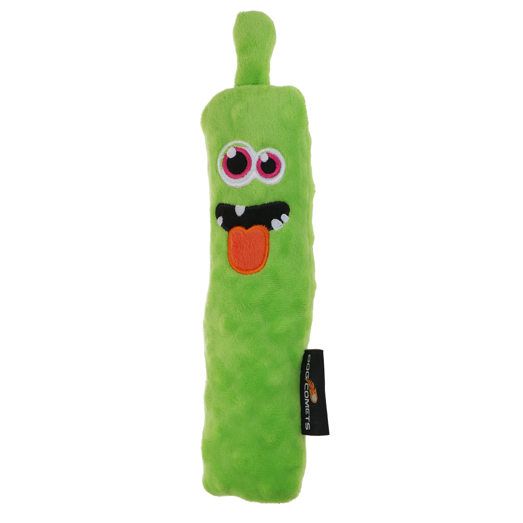 Deze buitenaardse wezens nemen samen met de trouwste viervoeters de wereld over! Deze knuffelige werpstokken zijn gevuld met een sponsvulling, wat ze zwaarder en dichter maakt dan standaard hondenspeeltjes. Het knisperende materiaal aan de binnenzijde en de pieper zorgen voor extra stimulans tijdens het spelen en moedigen de hond aan om zijn tanden in het speeltje te zetten. De Invaders zijn perfect om binnen mee te spelen, lekker mee te knuffelen en trek- en apporteerspelletjes te doen. Elke Invader heeft een unieke gezichtsuitdrukking en persoonlijkheid.