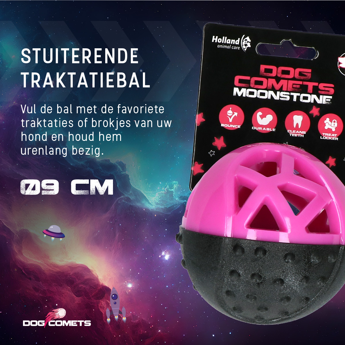 Deze bal stuitert niet alleen perfect, maar is ook geschikt om allerlei traktaties in te stoppen. Op deze manier wordt uw hond niet alleen fysiek, maar ook mentaal uitgedaagd. Met een pieper voor extra speelplezier.