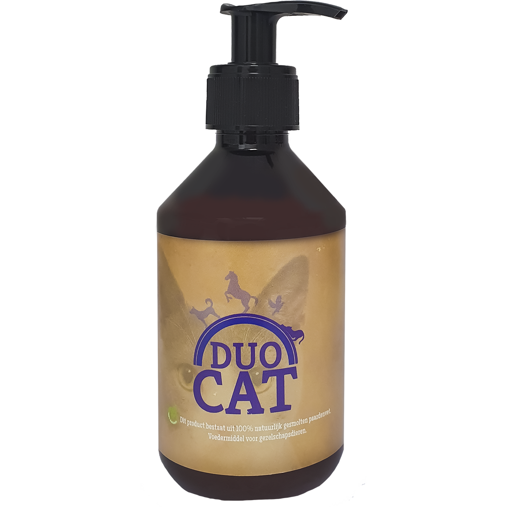 Duo Cat is een zuivere energiebron van de hoogste kwaliteit en een aanwinst voor iedere voersoort. Bovendien ondersteunt het bij een droge en gevoelige huid en heeft een positief effect op de vacht, huid, eetlust en energie van de kat. Het is ook te gebruiken voor katten die te maken hebben met verharing. Daarnaast is het een uitstekend voedingssupplement voor gezonde katten.