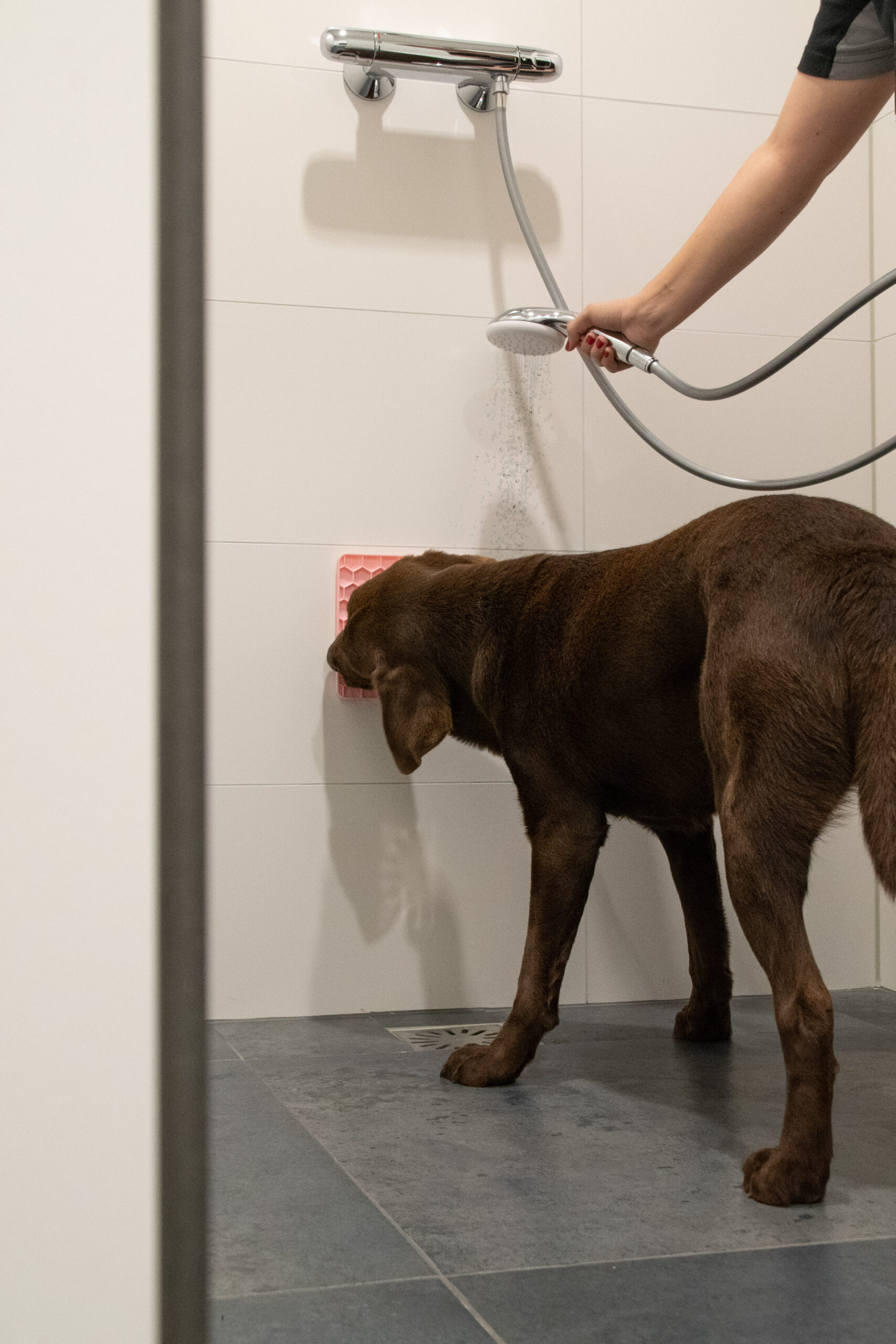 De Eat Slow Live Longer likmat is ideaal te gebruiken als een hond het bijvoorbeeld eng vindt om geborsteld of gewassen te worden. Het likken heeft een kalmerend effect.