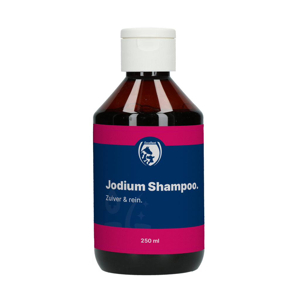 Jodium Shampoo voor het zuiveren en reinigen van vacht en huid.
