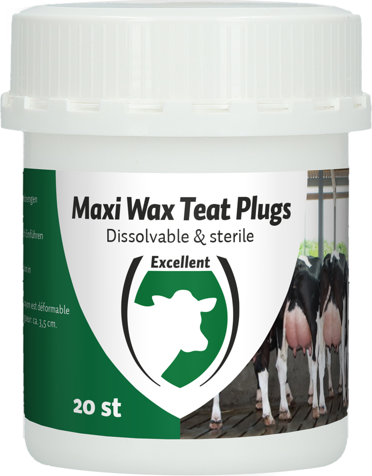 De Maxi Wax Teat Plugs zijn zelf oplossende, steriele wax tepelstiften. De Teat Plugs worden gebruikt ter bevordering van het herstel van beschadigde spenen. De Maxi Wax Teat Plugs zijn vervormbaar na inbrengen in het tepelkanaal en passen zich goed aan de omgeving aan, wat tot minder irritatie leidt. De stift kan tot 10 dagen in het tepelkanaal blijven zitten. Eventueel kan de stift ook uitgemolken worden. Herhaal indien nodig.