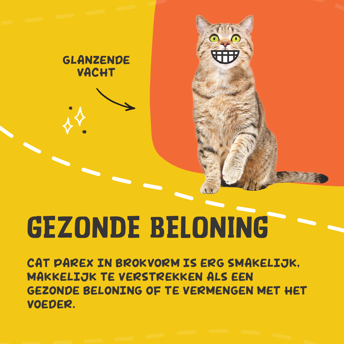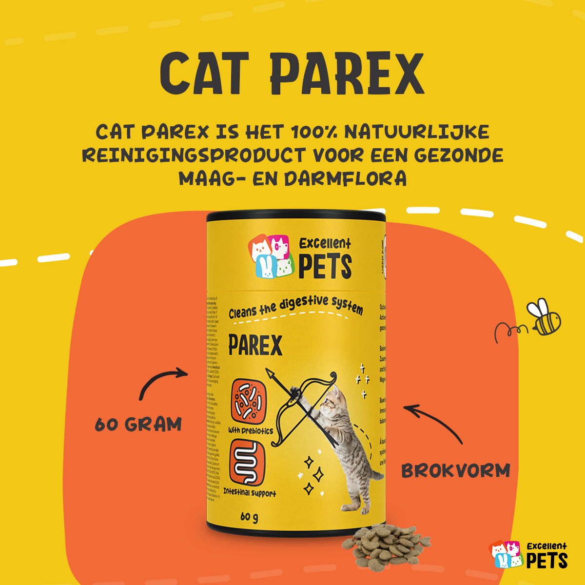 Excellent Pets Cat Parex is een aanvullend diervoeder voor katten in brokvorm. Het activeert het afweersysteem en draagt bij tot een gezonde en evenwichtige maag- en darmflora.