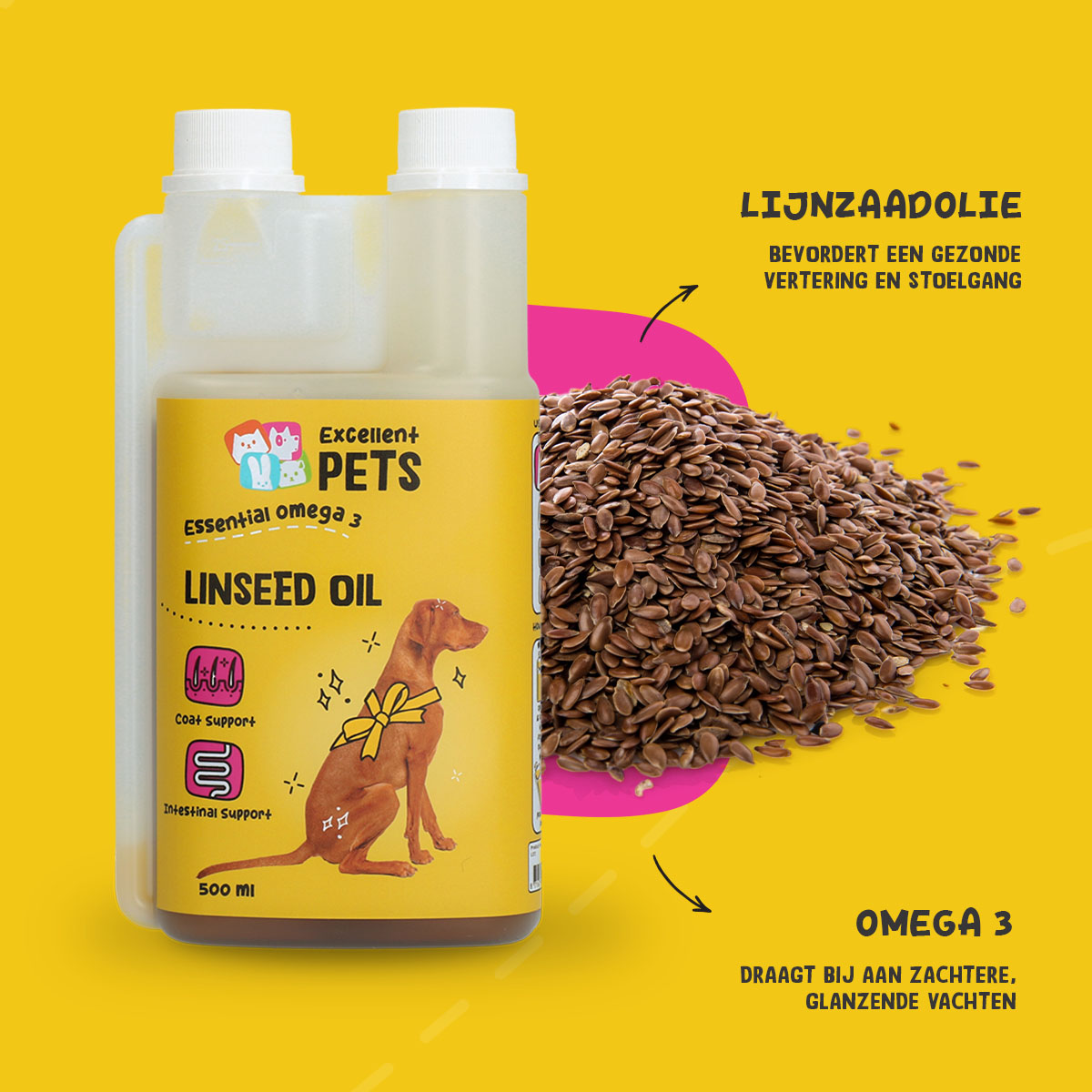 Excellent Pets Linseed Oil is een voedermiddel voor honden in vloeibare vorm. Het is goed voor de gewrichtsfunctie, het ondersteunt de spijsvertering en de darmfunctie en het ondersteunt het behoud van een gezonde huid en glanzende vacht.