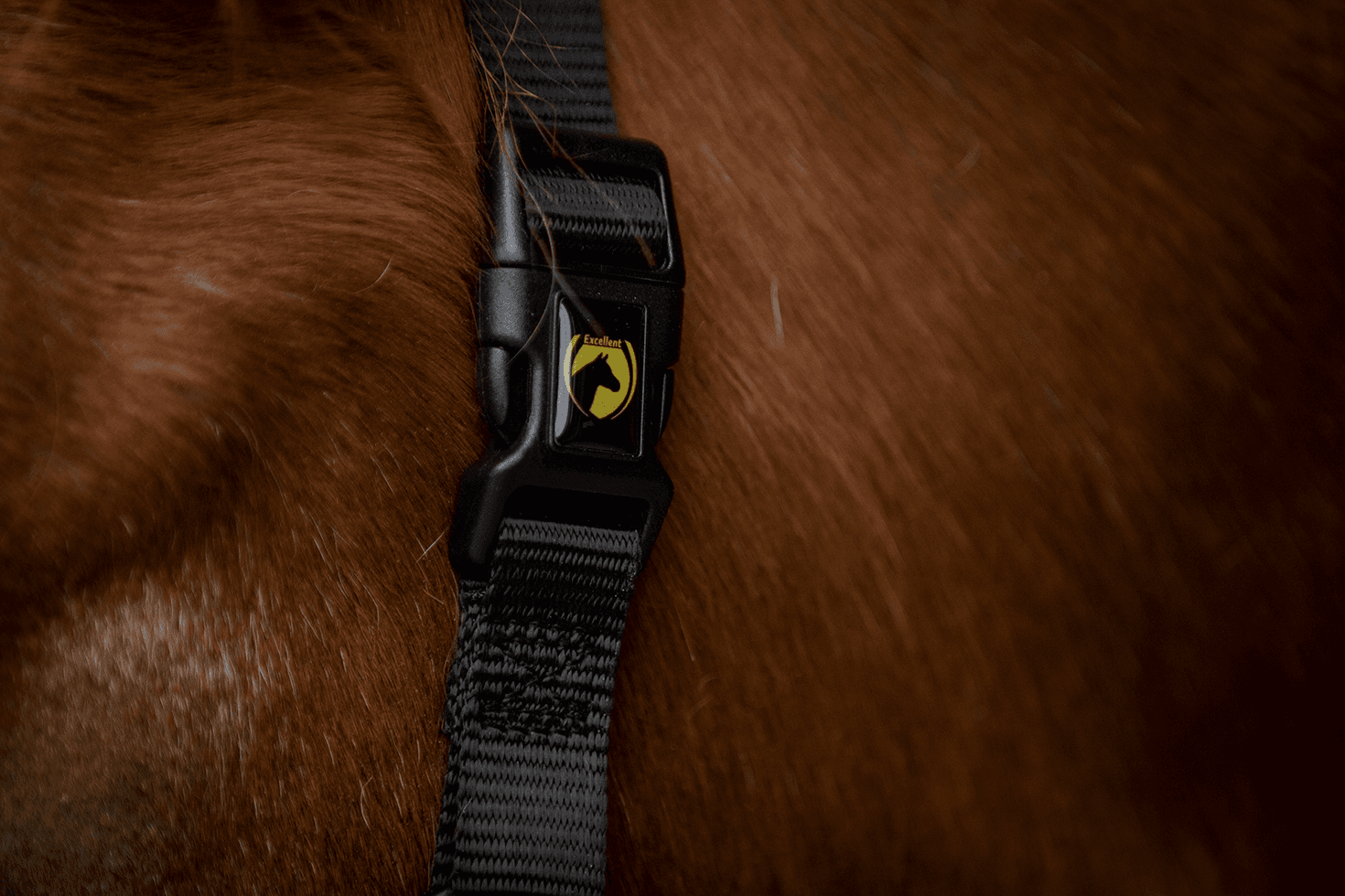 Met de Premium halsters van Excellent Horse combineert u veiligheid en gemak. Deze Premium halsters zijn namelijk net zo gemakkelijk te bevestigen als de Essential halsters – dankzij de handige klikgesp-sluiting op de neusriem en het kopstuk – en is bovendien ook voorzien van reflecterende details, zodat het halster en dus het paard altijd zichtbaar is in het donker. Het halster is onmisbaar in de wei of op stal en met behulp van het makkelijk bedienbare verstelsysteem op de neusriem en het kopstuk zorgt u snel en eenvoudig voor een optimale pasvorm. Doordat het halster van extra dicht gewoven nylon is gemaakt, is het halster zacht, flexibel en slijtvast.