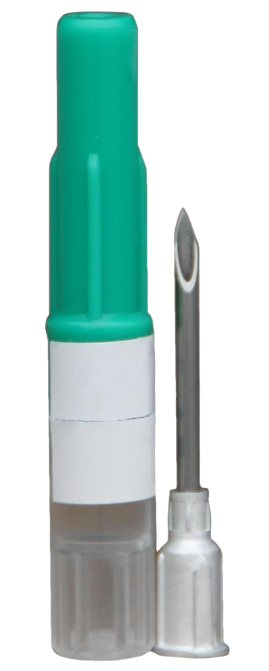 • Naald zit in de aluminium conus geponst