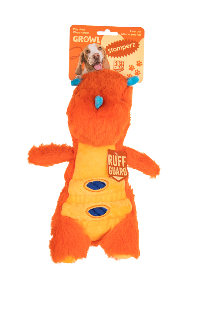 De Growl Stomperz zijn dinosaurusvormige pluche speeltjes die zorgen voor spannend en veelzijdig speelplezier. Elk speeltje is voorzien van een grote pieper, waardoor honden continu worden gestimuleerd om te ontdekken, kauwen en spelen.