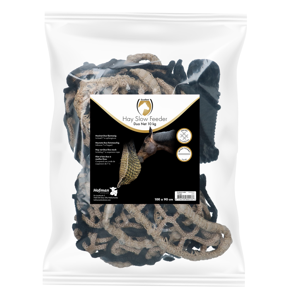 Zonder knopen en gemaakt van oersterk materiaal (polypropyleen) waardoor het net heel lang mee gaat. Daarbij zorgen de fijnmazigheid en de kwaliteit voor minder hooiverlies en ook een schonere stal.