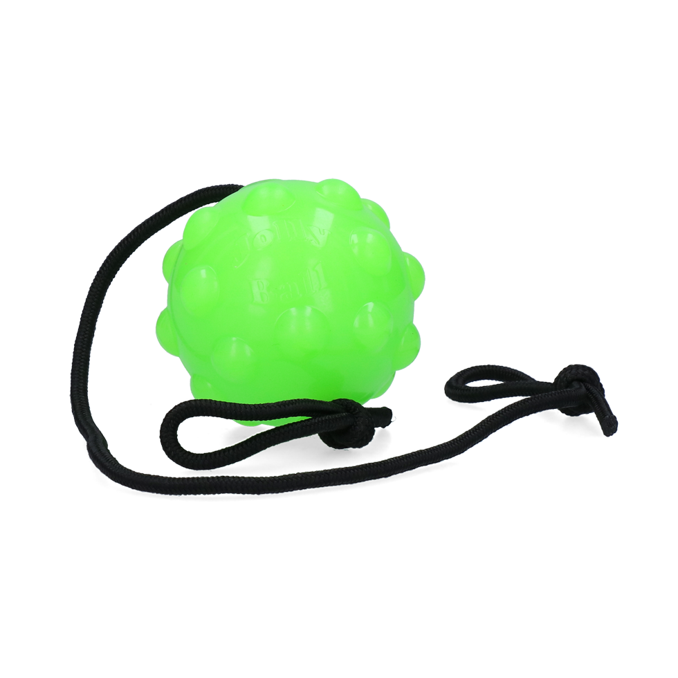 In de verpakking zit het touw, de elastische band en de bal die aan elkaar bevestigd kunnen worden.