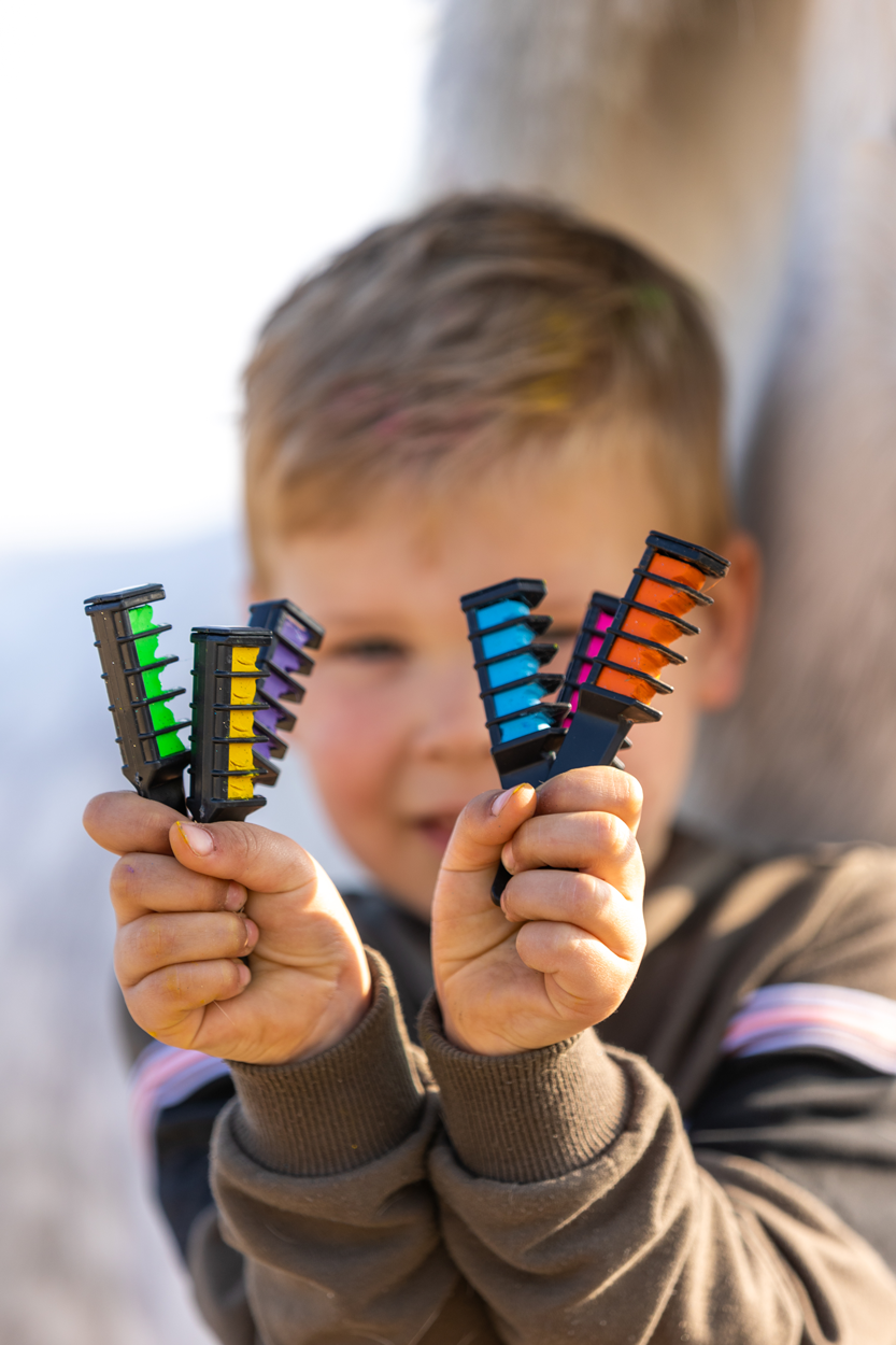 De kleurtjes zitten in een kammetje, waardoor je ze makkelijk aanbrengt.