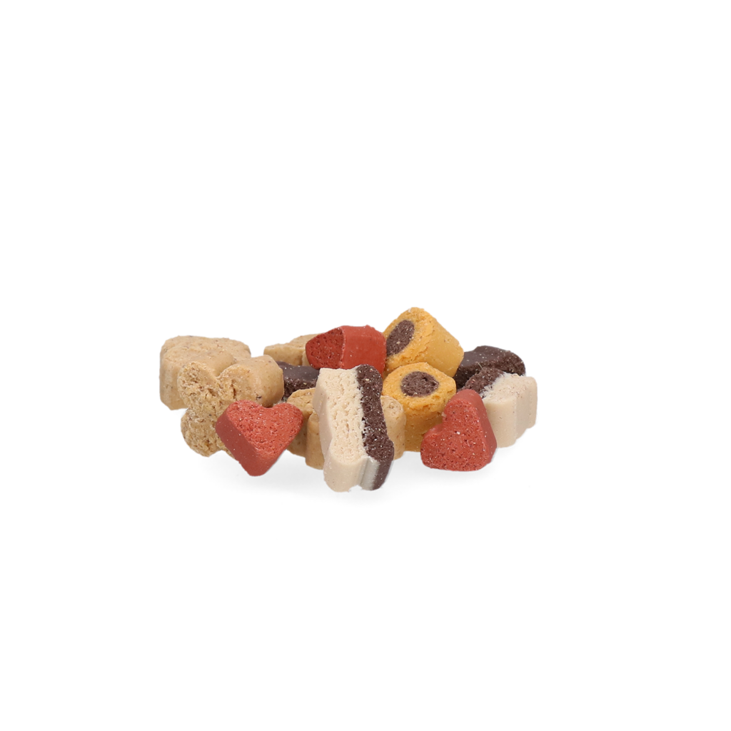 De delicatesse voor iedere hond! Luna’s Choice Trainer mix is een aanvullend diervoeder dat gegeven kan als beloning of tussendoortje. Deze trainer-snack is een semi-moist soft beloning. Dit houdt in dat deze snacks nog licht vochtig zijn en daardoor extreem krachtig zijn in smaak en geur. Ideaal voor leer- en trainingsdoeleinden. De uitbalanceerde samenstelling van granen, vlees, vis, plantaardige en dierlijke bijproducten zorgen voor een uiterst smakelijk hapje! Dit is de Tasty Mix variant: vier verschillende brokjes met ieder een heerlijke geur en smaak! Deze trainer-snack bevat geen toegevoegde suikers. Onze trouwe viervoeters zijn gek op snacks, geef ze dan ook de lekkerste met Luna’s Choice Trainer mix!