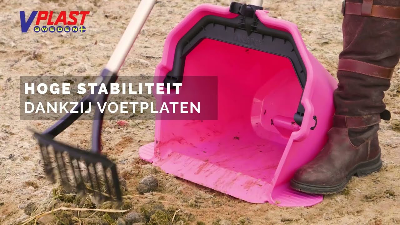 De Quick Pick is een door professionals ontworpen en is naast poepschep ook multifunctioneel inzetbaar. Gemaakt in zweden door de kwaliteit fabrikant V-Plast waardoor duurzaamheid geen vraagteken meer is bij de gebruiker. De grote capaciteit (gemiddeld 1x meer dan een standaard poepschep) kunt u langer en meer mest verwerken. De voetpendalen zorgen voor extra stabiliteit, u kunt met beide handen werken, rechtop blijven staan, en door het unieke design is de bak makkelijk te kantelen om mee te nemen zonder dat er poep uitvalt. Daarnaast kunt u de mest makkelijk van uw laarzen afschrapen door de ene voet op de steun te zetten en de andere aan de gepatenteerde rand in de bak te schrapen. De inkeping aan de onderkant zorgt ervoor dat de bak makkelijk kunt leeggooien zonder dat u uw handen vies moet maken.