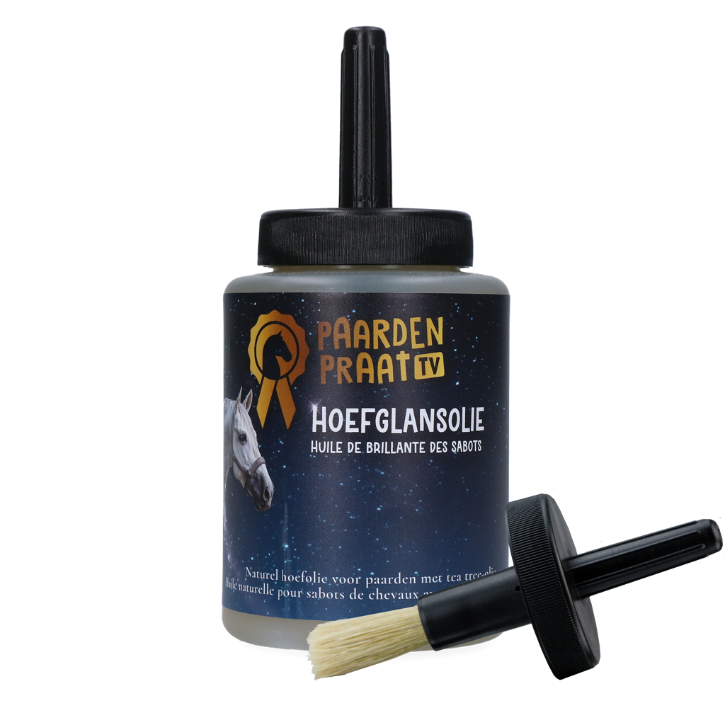 Hoefolie word al jaren gebruikt door veel paardeneigenaren en dit met een goede reden. Hoefolie geeft natuurlijke bescherming, voorkomt uitdroging en zorgt voor een verbetering van de conditie van de hoeven van het paard. De hoefglansolie van Paardenpraat is samengesteld door experts en natuurlijk uitgebreid getest door Paardepraat TV. Samen met deze professionals hebben we een selectie gemaakt van de beste hoefolie in combinatie met tea-tree olie. Deze combinatie zorgt ervoor dat de hoeven van het paard beschermd zijn tegen hoornkloven en afsplinteren. De unieke samenstelling van PaardenPraat TV Hoefglansolie zorgt ervoor dat deze snel intrekt, de hoef elastisch maakt, van binnenuit verzorgt en ook nog eens een mooie glans geeft.