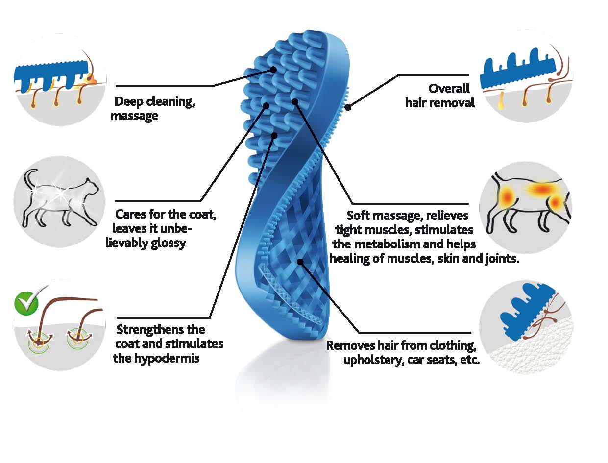 • Zachte massage , stimulering van de stofwisseling en genezing (spieren, huid en gewrichten)