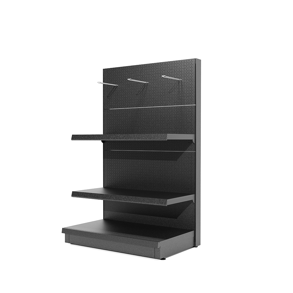 Stelling met een mooie strakke zwarte uitstraling, om producten optimaal te presenteren.