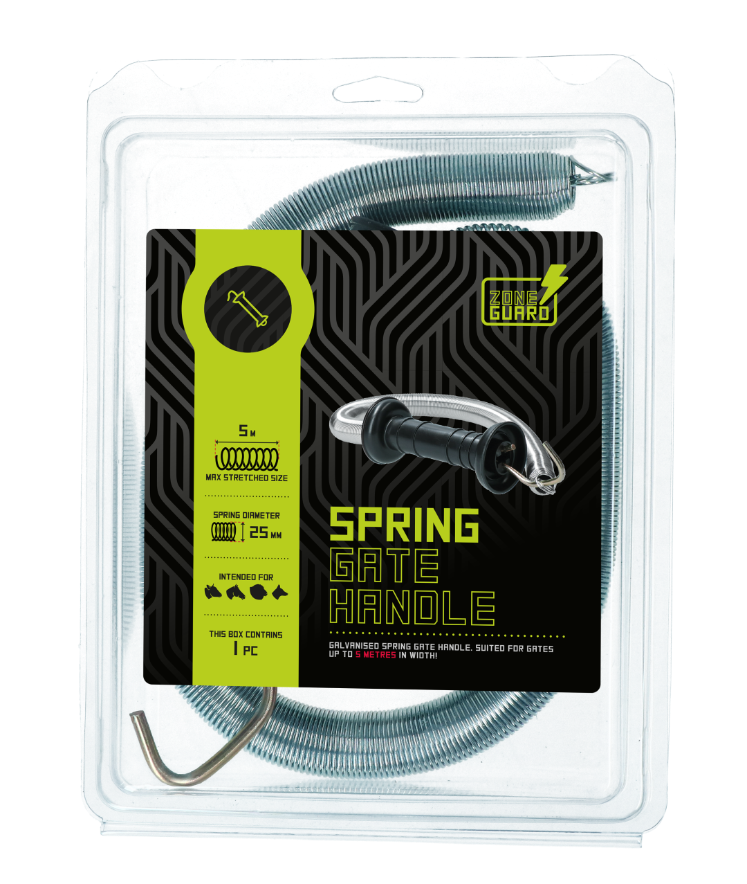 Poortgreep inclusief veer De veer met een doorsnede van 2,5 cm kan uitgerekt worden tot een lengte van 5 meter.